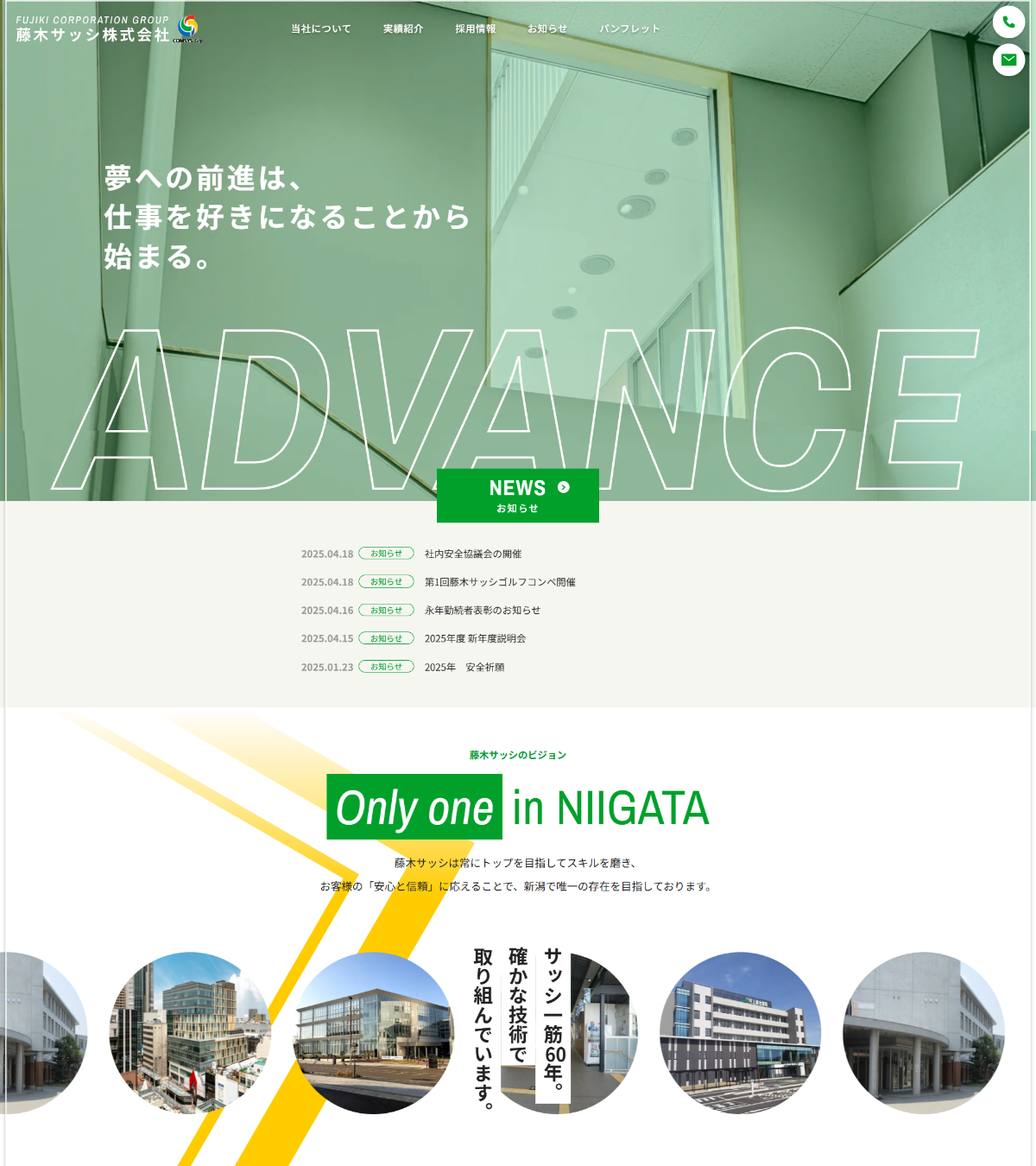 私たちの業務内容を【採用情報】ページの「藤木サッシの1日」に詳しくご紹介し、より身近に感じていただけるようにしました。