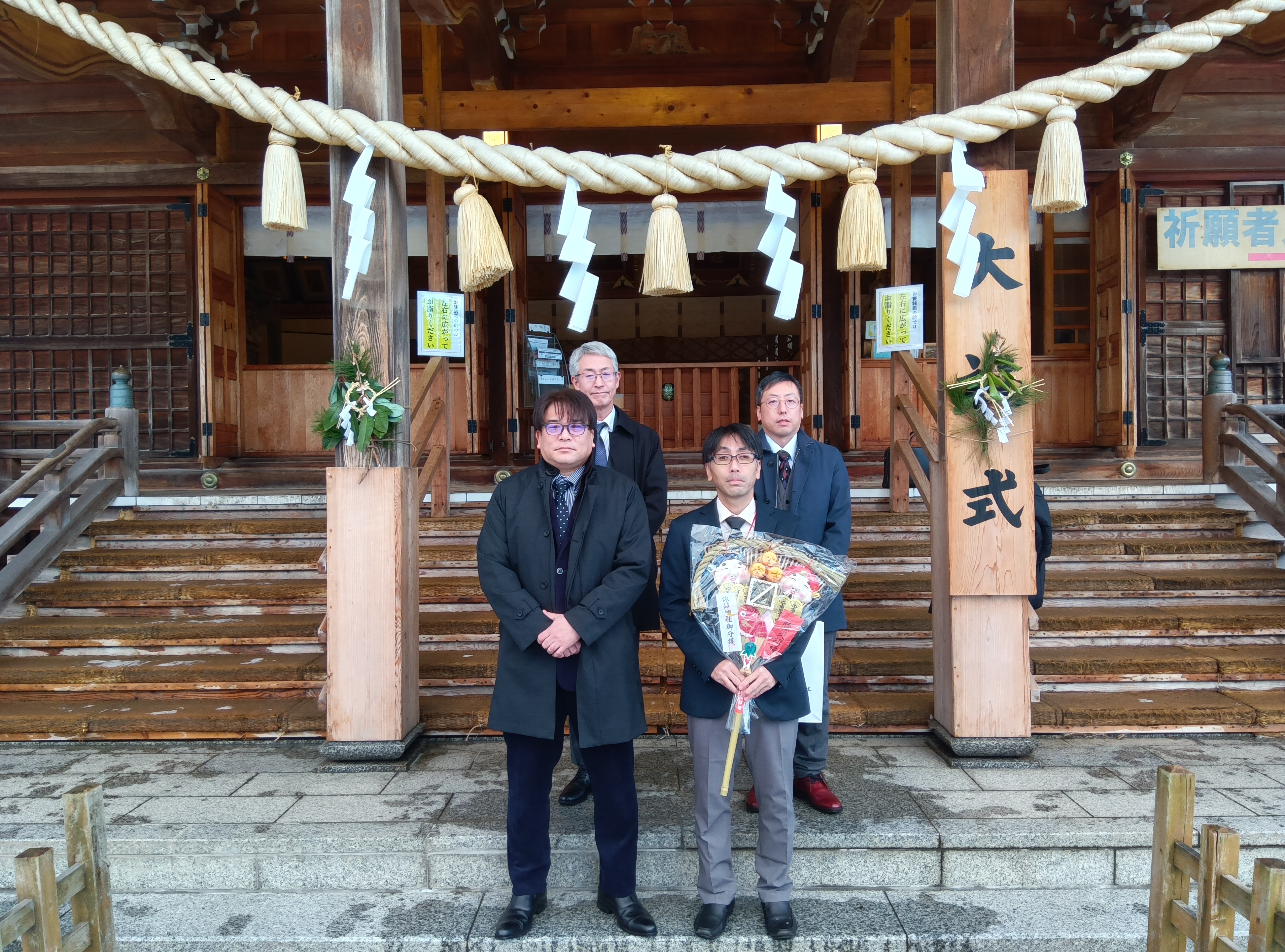 2026年01月15日(木) 2026年 安全祈願 1月9日、2026年の事業の安全と発展を祈念するため、新発田市の諏訪神社にて新年の安全祈願を行いました。 厳粛な雰囲気のもと、社員及びご家族の健康はもとより、日頃より当社を支えてくださる協力業者の皆様のご健勝とご繁栄も併せて祈念いたしました。 そして、事業のさらなる成長と一年を通じた無事故・無災害を祈り、気持ちを新たにいたしました。 本年も、皆様に信頼いただける企業を目指し、より一層努力を重ねてまいります。 引き続きご支援・ご愛顧のほど、よろしくお願い申し上げます。