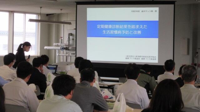 また、記念講演には 新潟県労働衛生医学協会 健康づくり推進部 田巻 望 様をお迎えし、『定期健康診断結果を踏まえた生活習慣病予防と改善』について講演を賜りました。